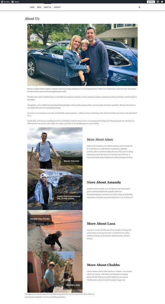 My husband and I launched a travel blog to document our adventures, combining our strengths to create a unique space for others to explore. Together, we brainstormed the name, then divided the tasks that best suited our individual skills. I focused on the logo, website design, and photography, while he took charge of creating the written content.